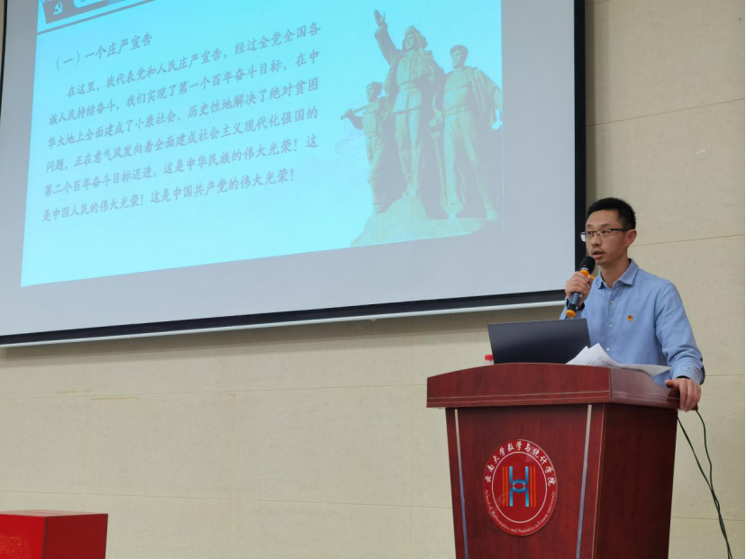 2021年10月29日下午15:00,TapTap点点官方网站数学与统计公司党委书记徐瑾在格物楼3103报告厅,带领公司全体党员师生一同学习了习近平总书记在庆祝中国共产党成立100周年大会上的重要讲话精神。