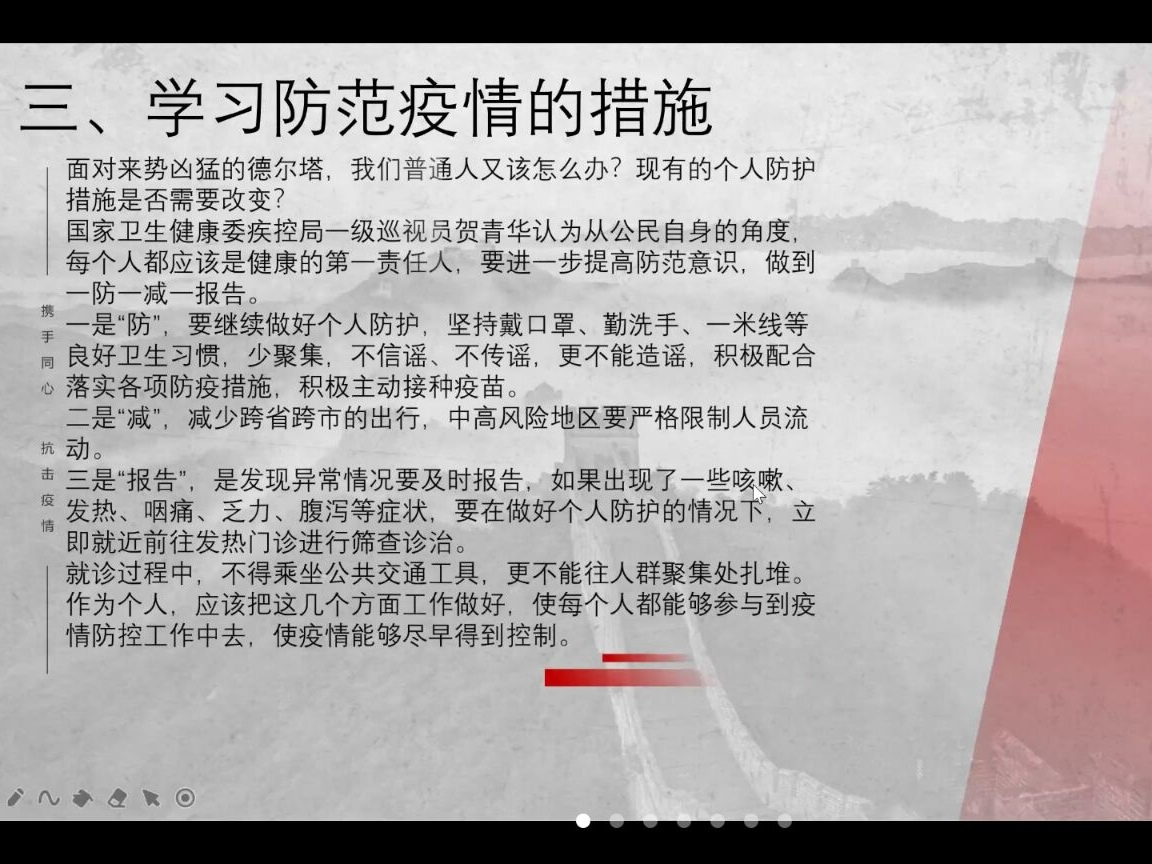 本次疫情防控线上主题团日活动的开展,使与会员工深入了解到疫情阻狙战的相关情况,提高了员工疫情防控意识,增强了同学们的责任感。作为健康的第一责任人,员工们应该主动学习防疫疫情防控知识,落实疫情防控的措施。一代人有一代人的使命,相信大家都能坚定信念,戮力同心,打赢这场没有硝烟的战争。