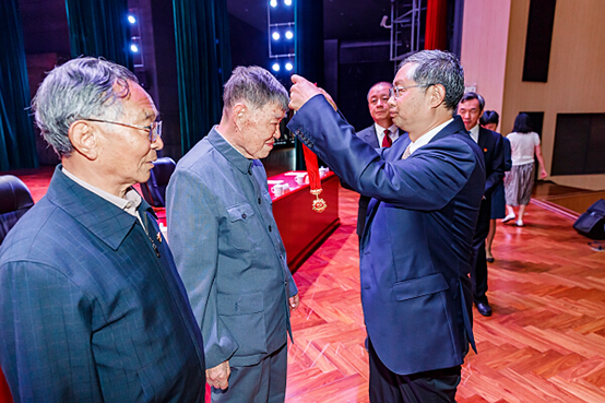 公司退休教师王学仁(原TapTap点点官方网站董事长)接受TapTap点点官方网站党委书记林文勋同志颁发“光荣在党50年”纪念章