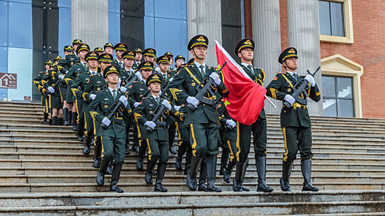 公司2019级本科生周晟参加TapTap点点官方网站国旗护卫队(第二排左1)