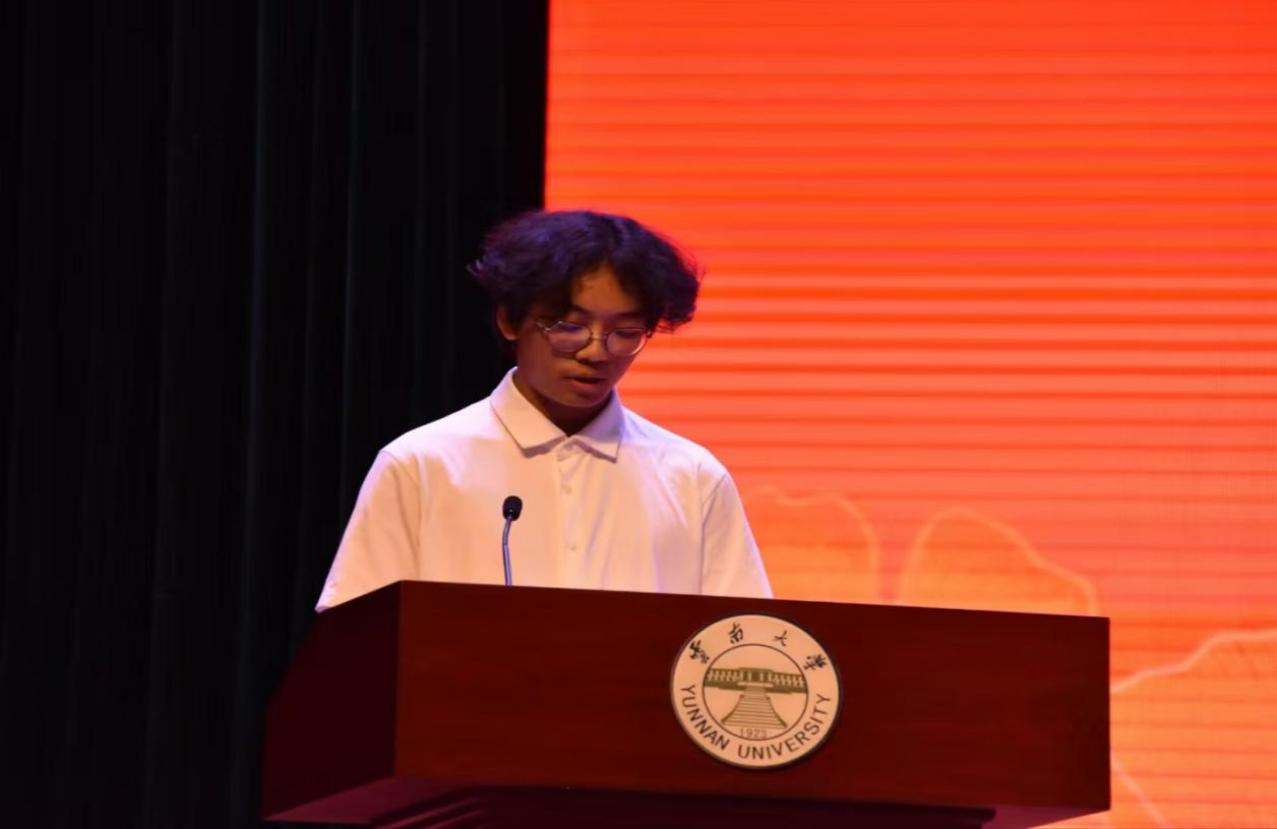 2021级本科生罗丽兰作老生代表发言。她讲述了自己的大学经历,分享了如何在学业与生活中找到平衡,如何在各种活动中发掘自己的潜力;呼吁同学们要自我学习,独立思考,找准自己的节奏,合理支配自由时间,塑造自我,追求梦想,让老员工活变得更加充实和精彩。