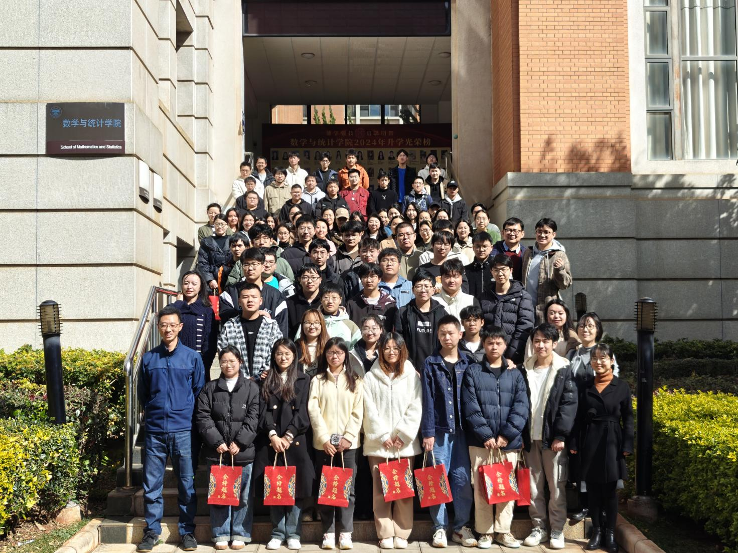 发放大礼包结束后,师生们一起合影留念。同学们拿着金榜题名大礼包聚在一起,凝聚考研力量!
