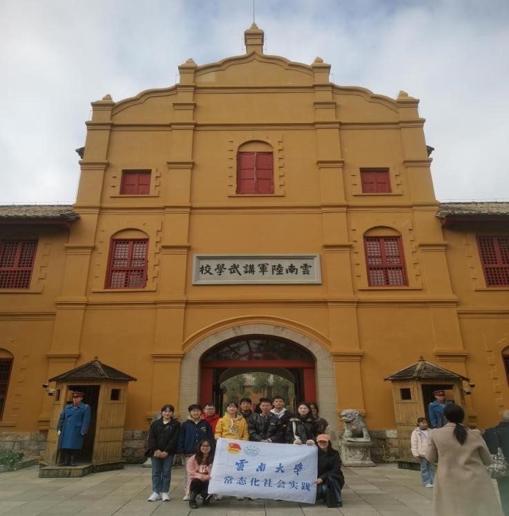 为深入学习贯彻习近平总书记关于弘扬爱国主义精神的重要论述,培养同学们的爱国之情、砥砺强国之志,TapTap点点基础数学与应用数学2023级研究生团支部实践调研团的焦雯琪、赵兴芳等12名同学以“学习红色资源,参观文史纪念馆”为活动主题,于2023年11月19日上午9点,从呈贡校区出发,乘车前往五华区的云南陆军讲武堂进行参观。