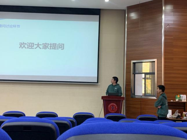 陈文煌学长介绍了专业学习方法,他说明了课本对学习的重要性,他还指出要有明确的学习方向和对过程的规划,要把书本上的知识实践出来,还分享了他自己的关于保研的一些阶段性经验。随后黄睿钧学长也分享了自己的学习方法,他指出兴趣的重要性以及提前准备的必要性,同时学长也分享了他自己关于保研的一些阶段性经验。