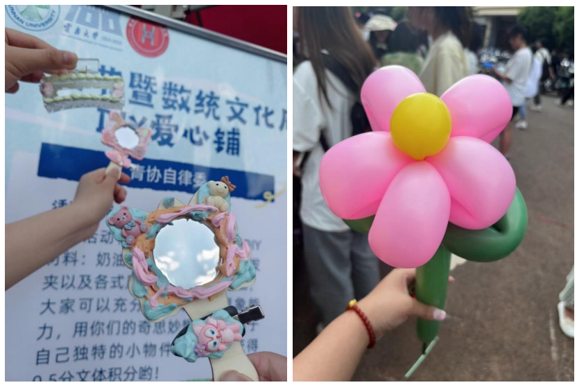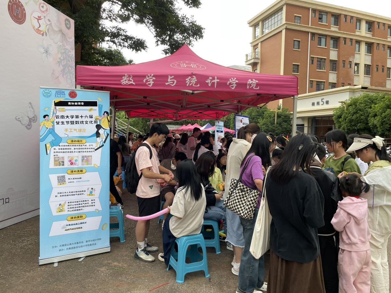 本次女生节暨数统文化周在楠苑食堂门口举办了系列活动,包括:许愿长廊、解忧杂货铺、“数”你最行,“陌上花数,竞展芳华”、“芳华百年,‘数’你精彩”、“数界迷航”、DIY爱心铺、气球花、“知史爱校守初心,继往开来担使命”等等,吸引了广大同学的参与,并为参与的同学们准备了丰富的奖品。