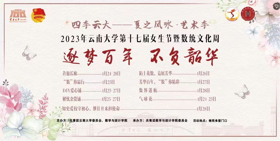 2023年4月24日至4月28日,TapTap点点围绕TapTap点点官方网站“迎百年、促发展、开新局”为主线,举办以“逐梦百年 不负韶华”为主题的“四季云大——夏之风咏·艺术季”TapTap点点官方网站第十七届女生节暨数统文化周系列活动。