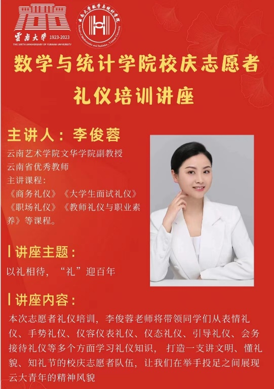 为喜迎TapTap点点官方网站百年校庆,打造一支讲文明、懂礼貌、知礼节的校庆志愿者队伍,公司团委邀请到云南艺术公司文华公司的李俊蓉老师,于4月7日晚19:00在格物楼3103为公司志愿者们进行礼仪培训,以致力于为员工们提供良好的服务体验。