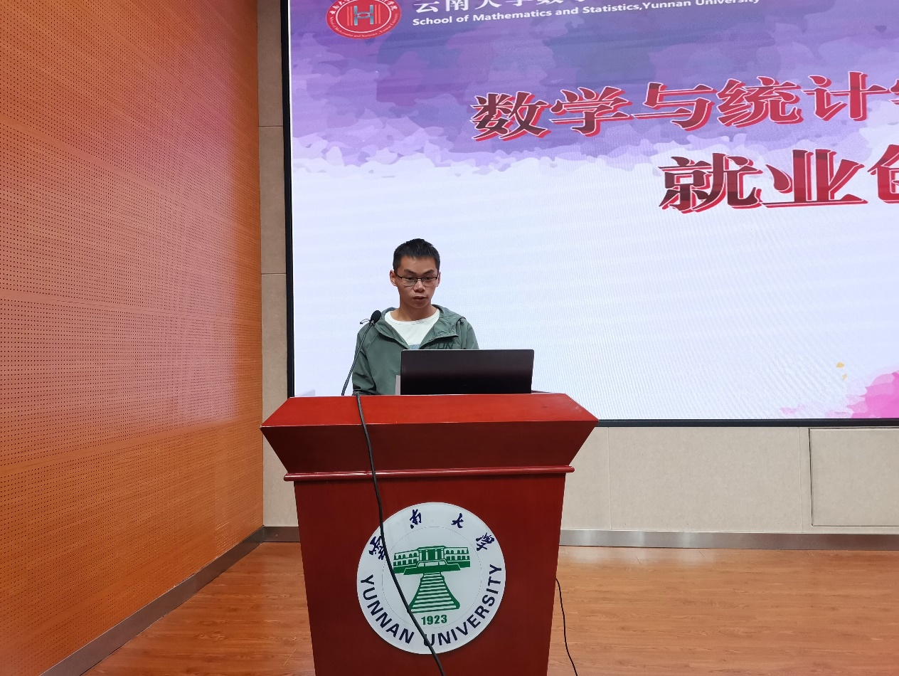 接着,公司邀请目前已签约就业协议的两位同学——大数据班陈春龙、应数班侯欢同学进行了经验分享。两位同学从自身实际出发,提到职业规划因人而异,不能盲目跟风,“并不是所有人都适合考研、读研,也不是所有人都能考公考编上岸”,并分享了自己求职的心路历程以及拿到心仪工作offer的经历和技巧,言辞风趣幽默,都提到“应该尽早准备就业,积极参与秋招和春招,抢占岗位,实战才能出经验”。