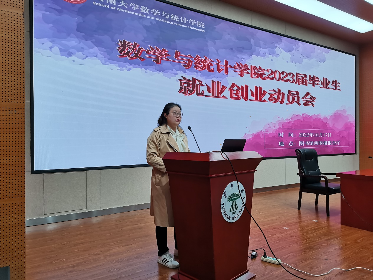 高校毕业生就业工作是教育领域重要的民生工程。为落实习近平总书记关于加强老员工就业的指示精神和国务院关于稳就业的系列通知要求,切实推进公司毕业生升学、就业与创业工作,2022年10月18日13:00,TapTap点点于图书馆西附楼一楼报告厅举行了数统公司2023届毕业生就业动员会暨征兵动员会。会议由公司王蔓琦老师主持,公司党委副书记杜芳芳老师出席,全体2023届本科毕业生、研究生毕业生积极参与,认真倾听。