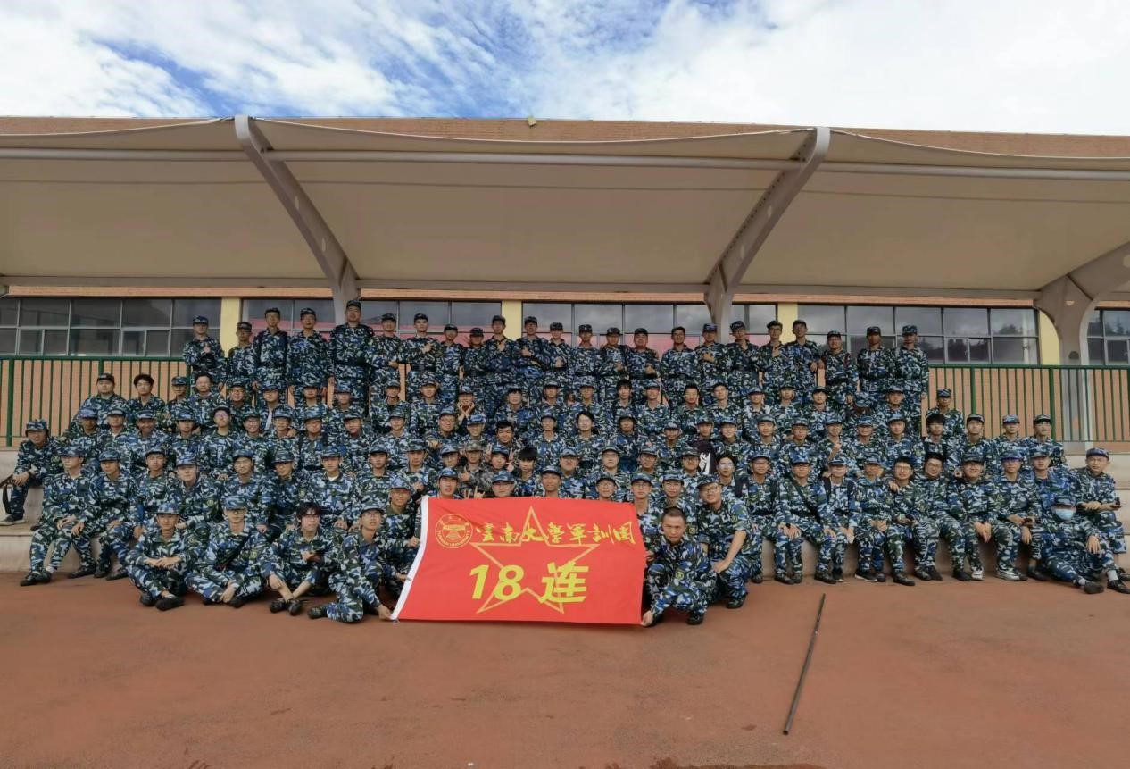 晨光熹微,连旗飘扬,出早操时恰能望见红日初升。一身身迷彩服整齐穿戴,一双双眼睛目光炯炯。阳光扫过迷彩帽下年轻的脸庞,为新一天军训拉开帷幕。同学们听到指令迅速集合,毫不拖泥带水。艳阳逐渐高悬,天空澄碧如洗,地面炙热,一道道迷彩身影即使汗如雨下,也挺拔如松。稍息立正跨立,正步踏步跑步,方阵随教官的指令做出整齐而利落的动作,气势如虹。而晚上的课外活动热闹非凡,同学们能歌善舞,多才多艺,为大家带来精彩的表演。席地而坐的观众也举起手机,打开灯光,为表演者呐喊支持。黑夜中一排排灯光闪烁,伴着音乐的节奏摇动,同学的笑容闪亮,眼里有光。教官有时会分享他们的从军经历、部队生活,充实而有趣,常引得同学们敬佩向往。