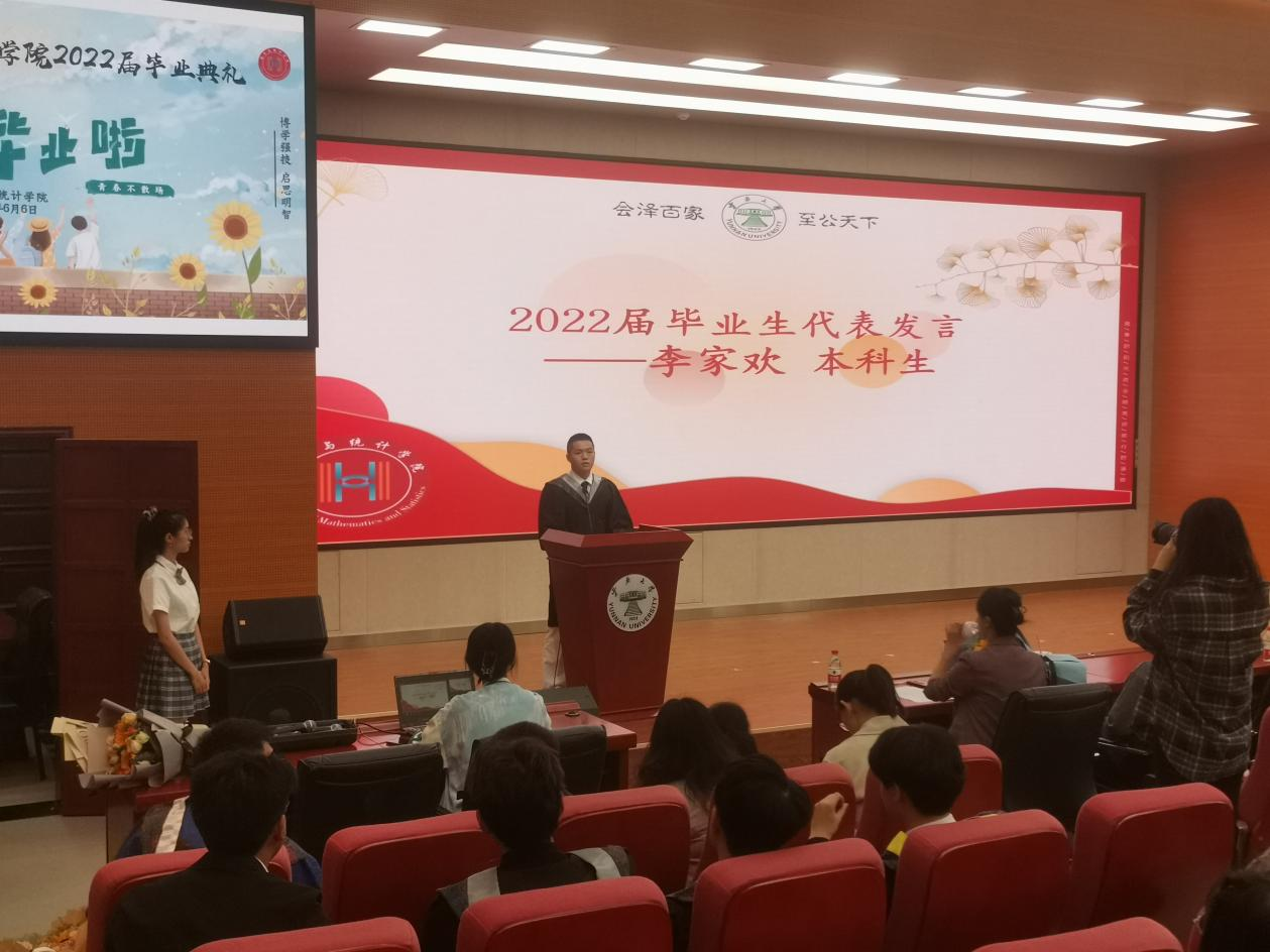 教师代表卢文轩老师在致辞中提及了许多与员工们朝夕相处的难忘片段,对员工们四年的表现给予认可,表达了对莘莘学子的深厚情谊,并祝福他们的明天更加灿烂辉煌。
