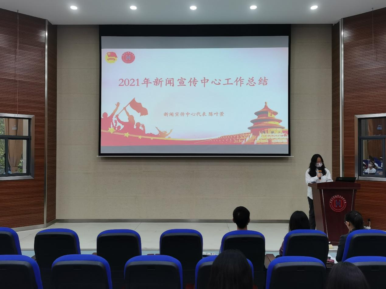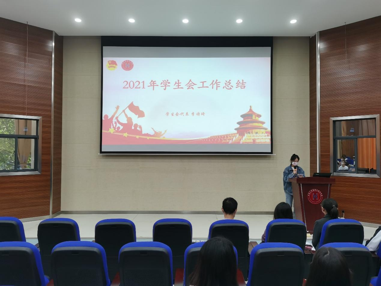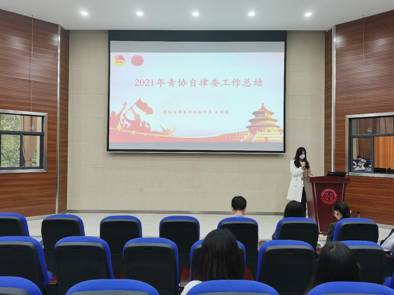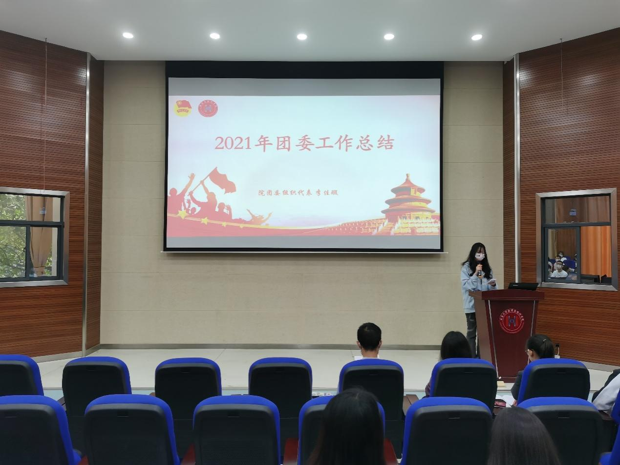 会议在嘹亮的国歌声中拉开帷幕。在过去一年中,公司团委圆满完成了各项工作,取得了优异的成绩。王蔓琦老师首先就公司2021年的团学工作进行总结发言;接着院团委组织代表李佳璇、员工会代表李诗琦、研究生会代表王晓盛、青协自律委联合会代表王雨洁、新闻宣传中心代表陈叶萱同学,对各员工组织2021年员工工作进行总结;五四红旗团支部支书宋佳恒同学,优秀毕业生代表李家欢同学进行发言。