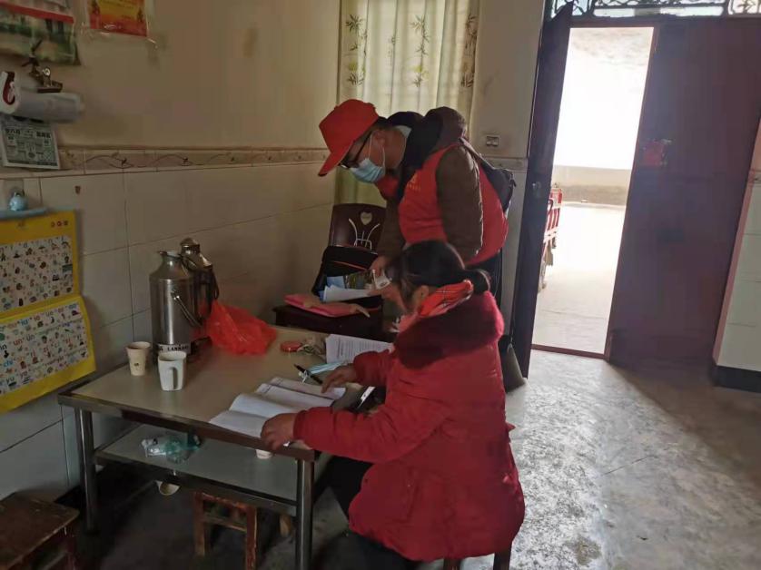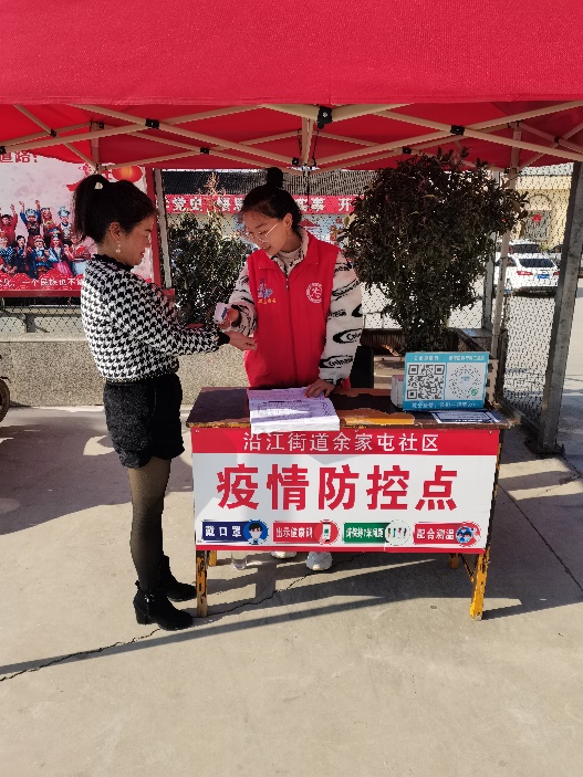 图4 张芊正在为社区人员测量体温