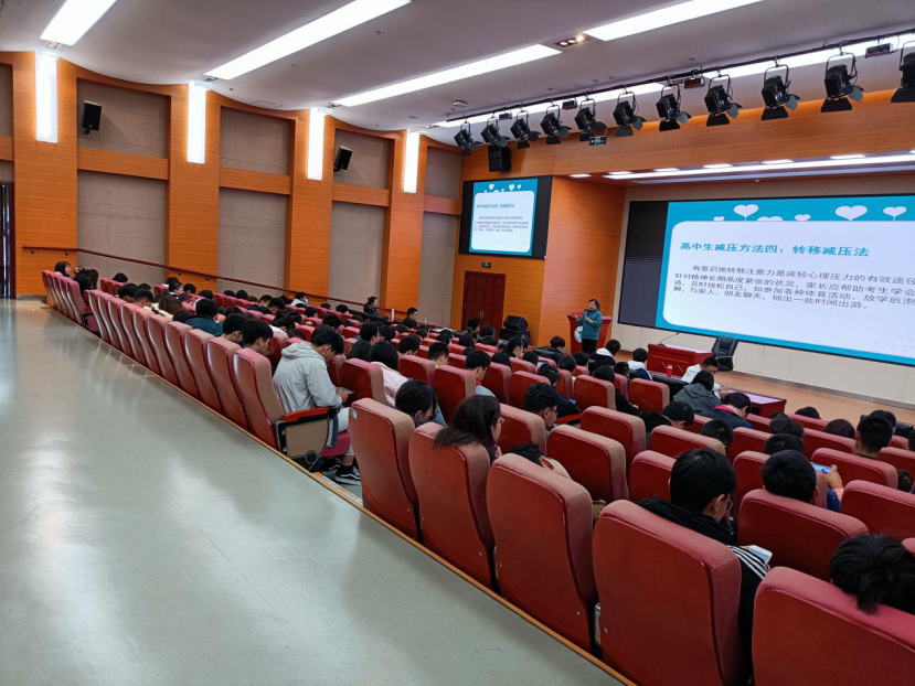在讲座中,杨老师以朋友的角色用“聊天”的方式和同学们分享心理健康知识,且通过问答获奖的方式充分调动了同学们的参与性,使大家印象深刻。例如减压妙招有:在纸上写出烦恼、即使消除疲劳、转移注意力等等。杨老师还让同学们体验了心理的效能,首先问大家周围环境中有什么物品是红色的,然后让大家闭上眼睛,再问周围环境什么物品是绿色的。由于第一个问题的干预,能回答第二个问题的只有寥寥几人。