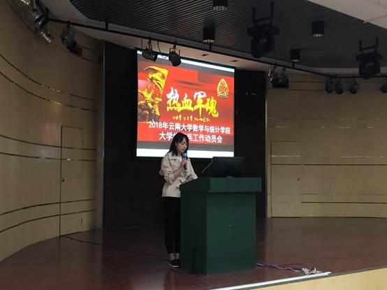 会议第一项议程是由公司党委副书记杜芳芳为大家作宣讲。她分别从政治、经济、发展方面阐述了本次征兵工作安排和征兵的相关政策,其中主要提到了免试攻读硕士、退役复学、奖励费增加等优惠政策,化解了各位同学对征兵入伍的问题及担忧。