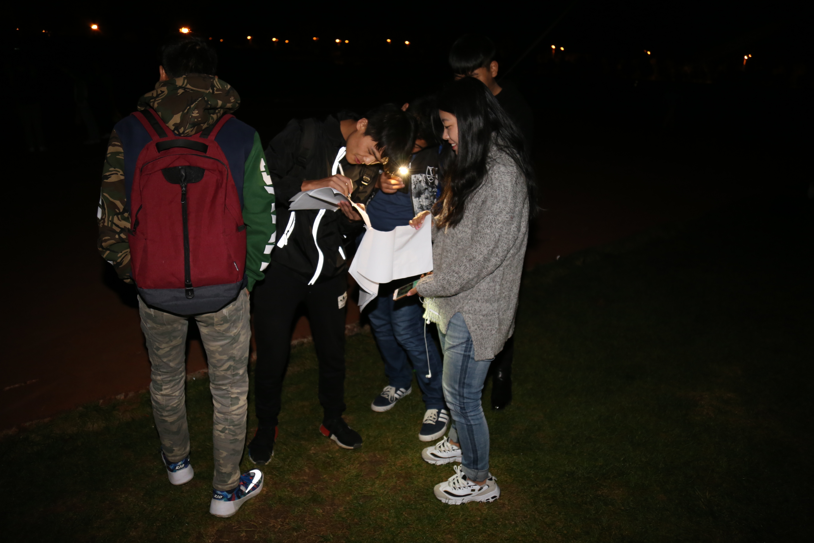 志愿者们首先在操场集合。活动前期,青年志愿者协会与自律委员会联合组织为同学讲解了夜跑的相关知识及注意事项,并制定夜跑计划。相关工作人员也尽职尽责地为夜跑人员发放TapTap点点夜跑手环,带来台灯等照明设备,保证了活动的顺利进行。