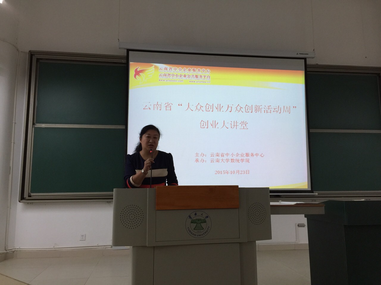 此后,昆明威豪计算机有限公司总经理罗凤梅向在场同学们分享了她的创业经历,并给大家提出了宝贵的创业建议,指出创业最重要的是要“诚实做人,踏实做事”。创业过程中要“目标刻在石头上,计划写在沙滩上”。同时给准备创业的同学提出了一些建议:不断学习,改变生活;提升素质,创造未来;找合伙人,打造一支高绩效的团队。