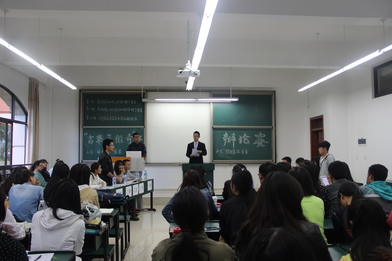 之后,由统计学队员组成的正方与信息与计算机科学队员组成的反方就“成功路上好队友和好对手哪个重要”进行辩论。当双方论述完毕,团委副书记张世滨,员工会副主席冯雨思,辩论队副队长罗菁莹,辩论队队长陈美玉先后点评了参赛队员的表现,并点明答辩时语速,气势,时间把握的重要性。其中,辩论队队长陈美玉特别对自由辩论环节的规则进行了强调。