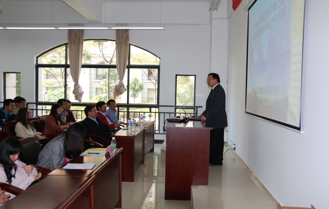 何成研究员在讲座中并作了题为“Incompressible Navier-Stokes Equations”的精彩报告,系统介绍了N-S方程的最新研究进展及相关研究工作。姚正安教授就“偏微分方程在图像加密方面的应用”作了详细介绍。谭忠教授的报告题目是“Z-pinch内爆等离子体二维三温辐射磁流体动力学方程”,旁征博引地阐述了偏微分方程在等离子体力学中的应用研究。