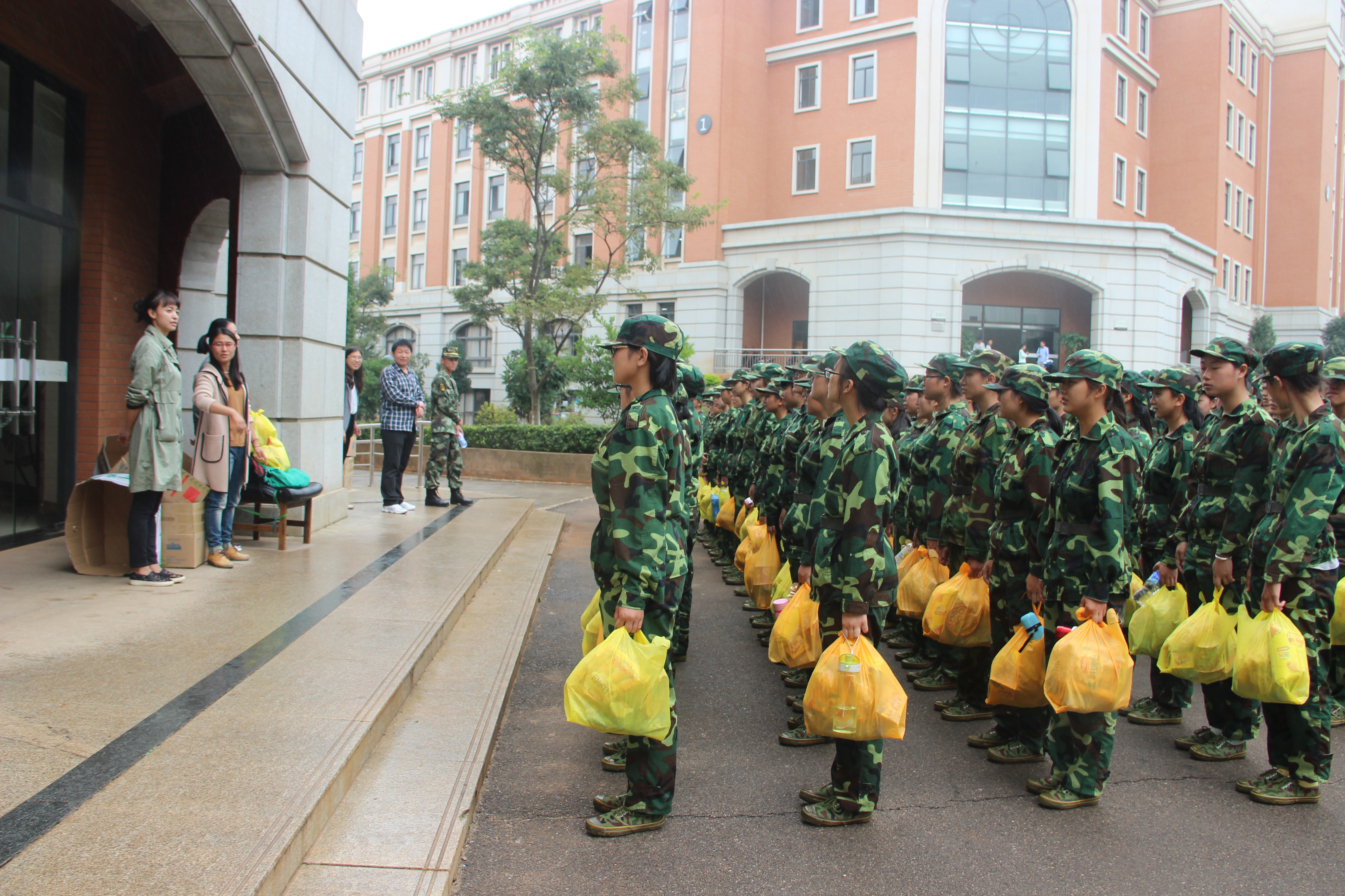 在男生连领取完慰问品后,女生连也按时来到慰问地点。整理好队伍后,女生连也接受了杜芳芳的问候及鼓励。女生连严肃地听完副书记杜芳芳的讲话后,在老师的指令下依次井然有序地领取慰问品。“谢谢老师……谢谢老师……”女生连礼貌地顺序从老师手中领取了慰问品。