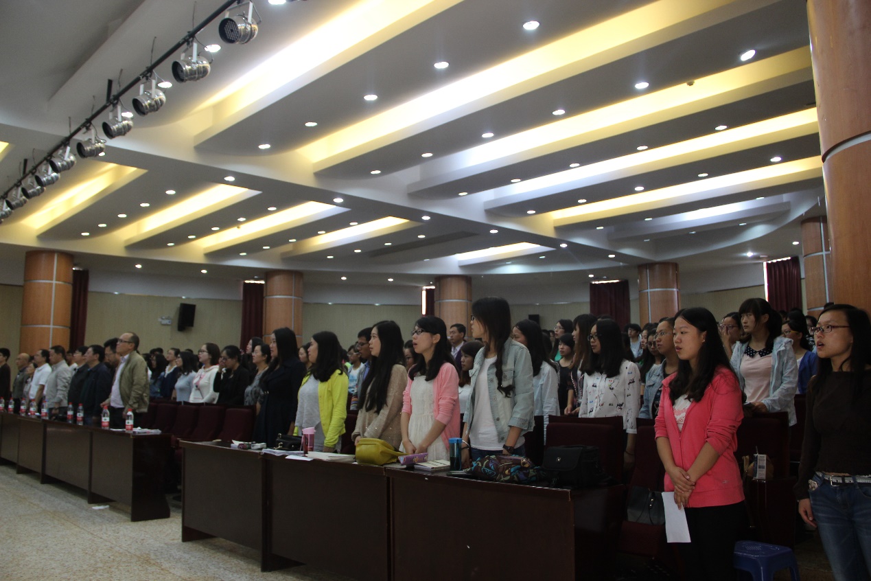 本次典礼由数学与统计公司党委副书记杜芳芳担任主持,在表达了对全体同学的祝福与感谢之后,杜芳芳老师宣布此次开学典礼正式开始,全体师生起立奏唱国歌。在气势磅礴的国歌声中,公司各级领导以及老师严肃而认真,充分表现了他们要为祖国培养出新一代人才的决心。而稚气未脱的新生们也表现出了对未来的无限憧憬与向往,同时也表现出了他们要为TapTap点点注入一股新的力量的决心。国歌奏毕,紧接着由党委书记李永昆进行发言。在发言中,李永昆书记提出“人才需要准备,因此我们需要好好规划自己的未来”。这句话表达了李书记对我们2015级新生的殷切希望。希望他们在数统公司这个大家庭中能够严格要求自己,规划好自己的未来,为迎接将来的挑战而不断的充实自己、提高自己、完善自己,四年洗礼之后成为真正的人才。