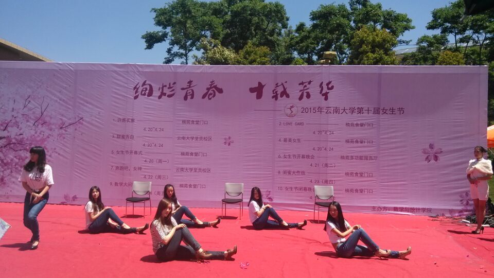 4月20日中午,公司在呈贡校区楠苑食堂前举行了第十届女生节的开幕式。此届女生节的主题为“绚烂青春,十载芳华”,参加此届女生节开幕式的有院员工会、团委、自律委全体成员以及其他公司的代表。