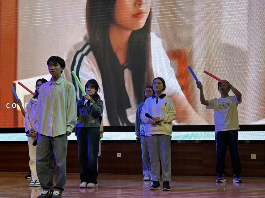 晚会以青协实践部和自律委外联部带来的《共舞辉煌》拉开序幕,展现团结的力量。研会综合部的《三句半》朗诵引发阵阵笑声,团委办公室的《青春回音·高中时光瑶》带领大家重温校园时光。团委科创部的《数与舞的交响》融合朗诵与歌舞,青协办公室的《回忆颂》用歌曲串烧唤起了青春记忆。