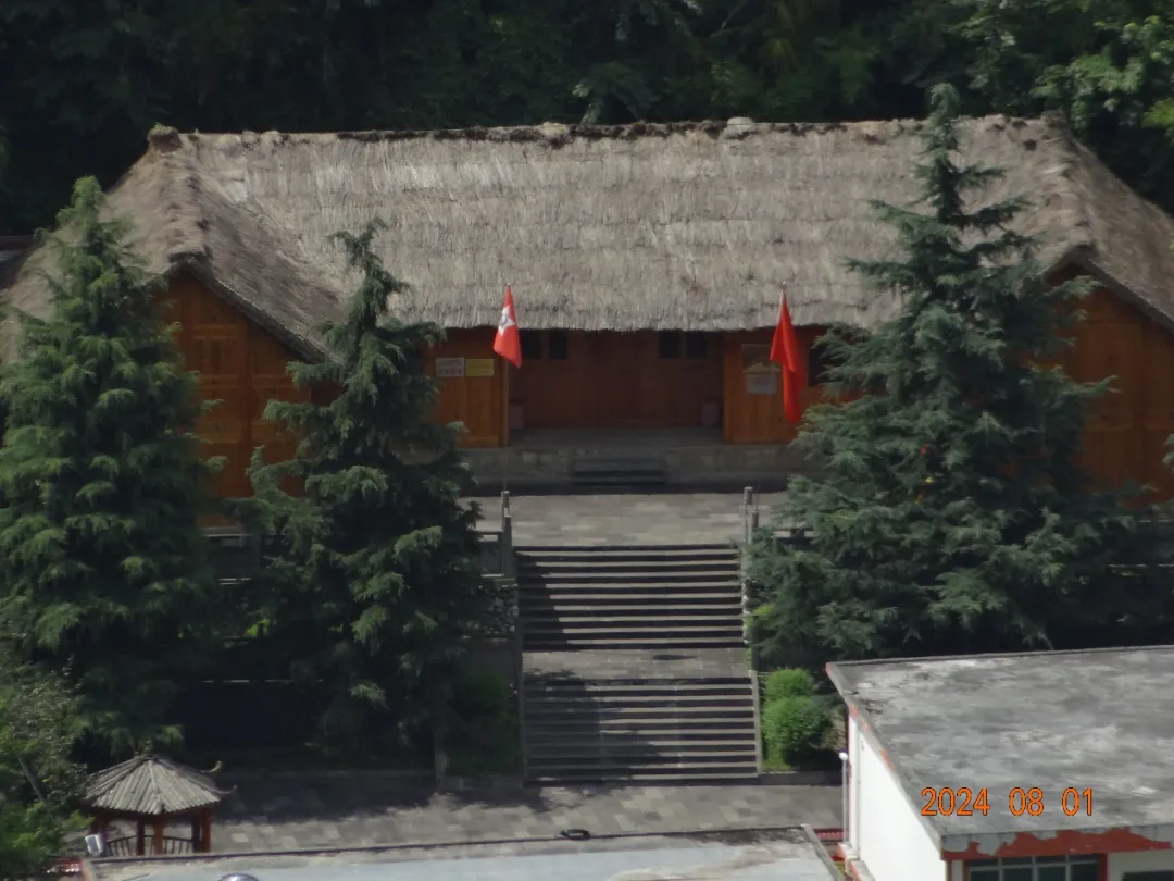 2024年8月1日上午,TapTap点点“访聚贫困红色土地,调研脱贫攻坚成果--基于云南省深度贫困县调查”三下乡实践团在云南省昭通市镇雄县长坝镇巴溜村开展了第一次实践活动。实践团在村干部鲁绍祥支书的带领下,前往贺龙指挥部旧址参观。恰逢八一建军节,举国欢庆,延续红色血脉,发扬奉献精神,悼念革命英烈。骄阳似火,暑热非常。实践团怀着崇敬的心情跟随鲁支书来到了目的地。指挥部旧址坐落于巴溜村幽静之处,四周被绿植围绕。飘扬的红旗,自下而上的石阶,显示出一派庄严但氛围。屋内布局设有伤员房间,指挥长房间,发报房,哨兵房,皆坐落有致。