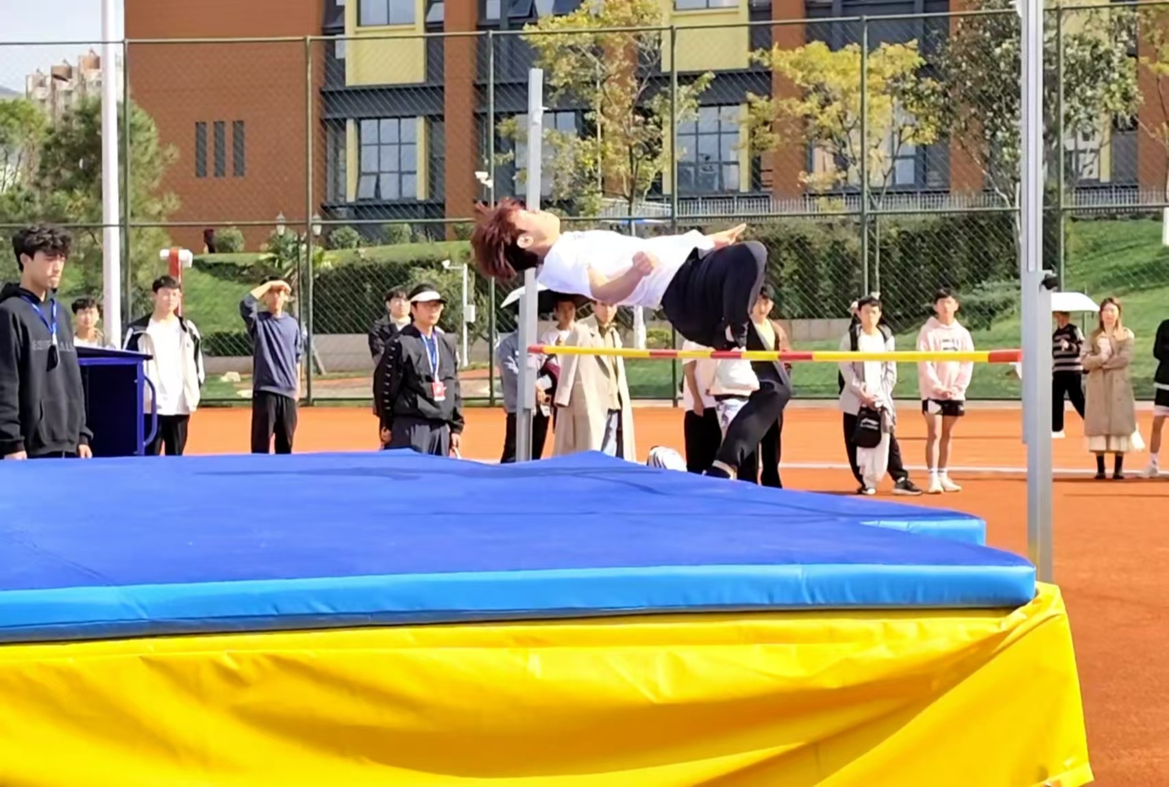 在跳高项目中虎诗哲、支英翰、吴蕊利和李佳璇同学,他们的助跑像是离弦的箭,在空中的姿态宛如拉满的弓,一鼓作气,再创辉煌。其中支英翰同学获得男子跳高第七名,吴蕊利同学获得女子跳高第二名的好成绩。