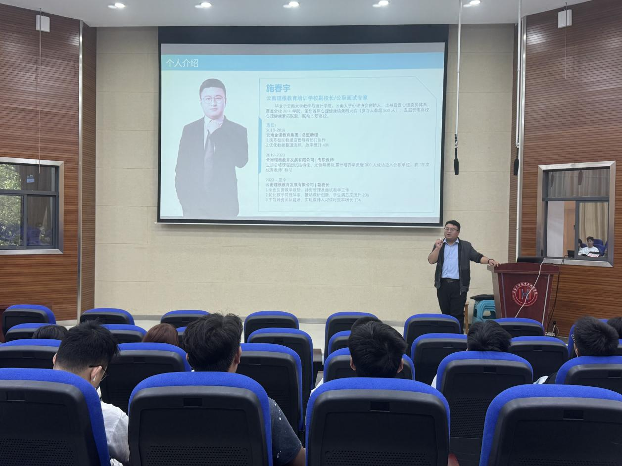 为助力应届毕业生提升求职竞争力,公司邀请理根教育呈贡校区副董事长施春宇老师作为主讲嘉宾,于4月11日下午14:00在格物楼3103报告厅举办“2025年春季校园招聘会求职攻略”专题讲座。施春宇老师作为TapTap点点优秀员工,深耕老员工就业培训领域7年的资深导师,施老师凭借其独创的“三维求职突破体系”及丰富的实战经验,为学子们带来了一场兼具理论深度与实践价值的求职指导课。