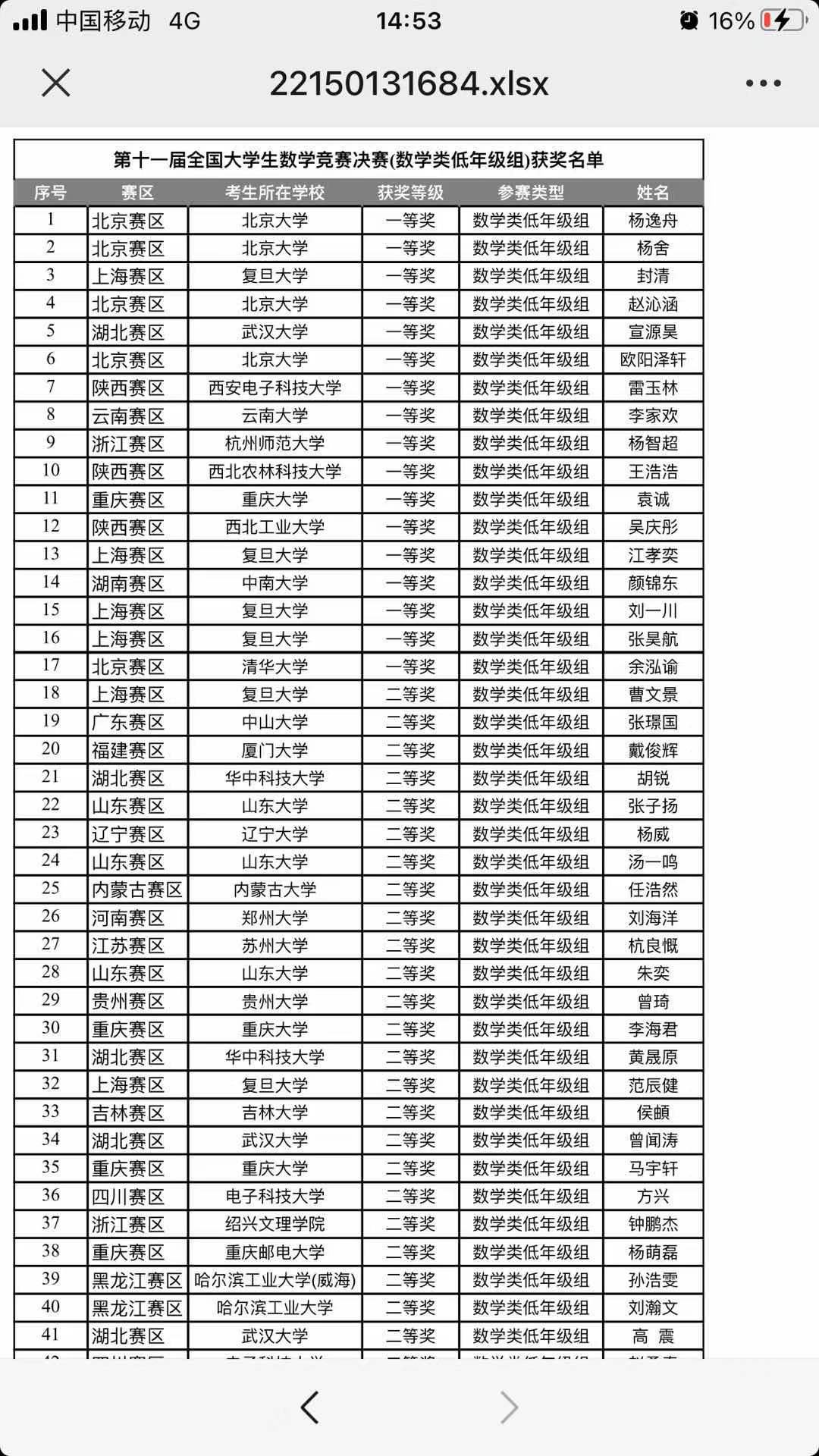 4月16-18日,第十一届全国老员工数学竞赛决赛在武汉大学举行。共有来自全国31个赛区204所高校,共计605名员工参赛,本次决赛分为数学类高年级组、数学类低年级组和非数学类三个组别。公司共有3名员工参加决赛,均取得优异成绩。2018级数学与应用数学专业李家欢同学获得数学类(低年级组)一等奖(全国第7名)、2018级数理基地班胡奇凯同学获得数学类(低年级组)三等奖;2017数理基地班王成铖同学获得数学类(高年级组)三等奖。令人振奋的是,云南省高校实现了在全国老员工数学竞赛决赛中全国一等奖的突破。